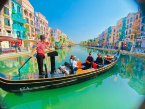 這裡模擬了著名的北方城市威尼斯,在此地方遊客可以乘坐貢多拉船在800m多長的威尼斯河上巡遊,同時欣賞“迷你義大利”城市的色彩繽紛的房屋全景。